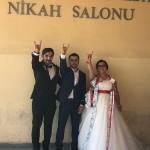 Nikaha katılan Ülkü Ocakları Eğitim ve Kültür Vakfı Başkanı Ufuk Akdeniz ise genç çifte Türk Bayrağı ve Kur’an-ı kerim hediye etti.