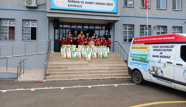 Veteriner İşleri Müdürü Erdal Terzi, Nurdan ve Ahmet Orhan Oğuz İlkokulu öğrenci ve öğretmenlerine duyarlılıkları için teşekkür etti.