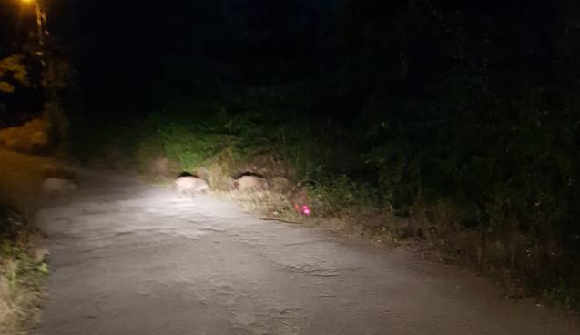 Mahallelerde görülen yaban domuzları kameralara yansıdı...