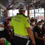İçişleri Bakanlığının talimatları gereği Corona Virüs salgınıyla mücadelenin etkin sürdürülebilmesi amacıyla ülke genelinde 81 il ile birlikte Ereğli’de de 15.00-15.30 arası saatleri arasından yapılan denetimlerde 66 toplu ulaşım aracı, 54 taksi denetlendi. Biri toplu ulaşım aracı, biri taksi olmak üzere maske takmayan iki sürücüye 900'er lira idari yaptırım uygulandı. Polis ve zabıta görevlileri birlikte pazaryerinde denetimlerde bulunarak satıcıların ve diğer vatandaşların maske konusunda bilinçlendirici çalışma yapıldı. Uygulama esnasında maskesi olmayan kişilere maske dağıtımı da gerçekleştirildi.