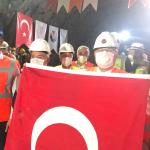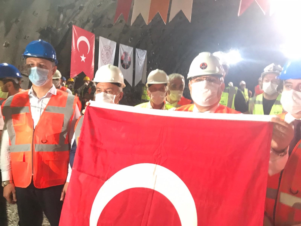 Yapılan konuşmaların ardından iş makinesinin son darbesiyle tünelde ışık görülerek büyük bir mutluluk yaşandı. Tünelin diğer kısmından getirilen Türk bayrağı Zonguldak Valisi Mustafa Tutulmaz’a teslim edildi.