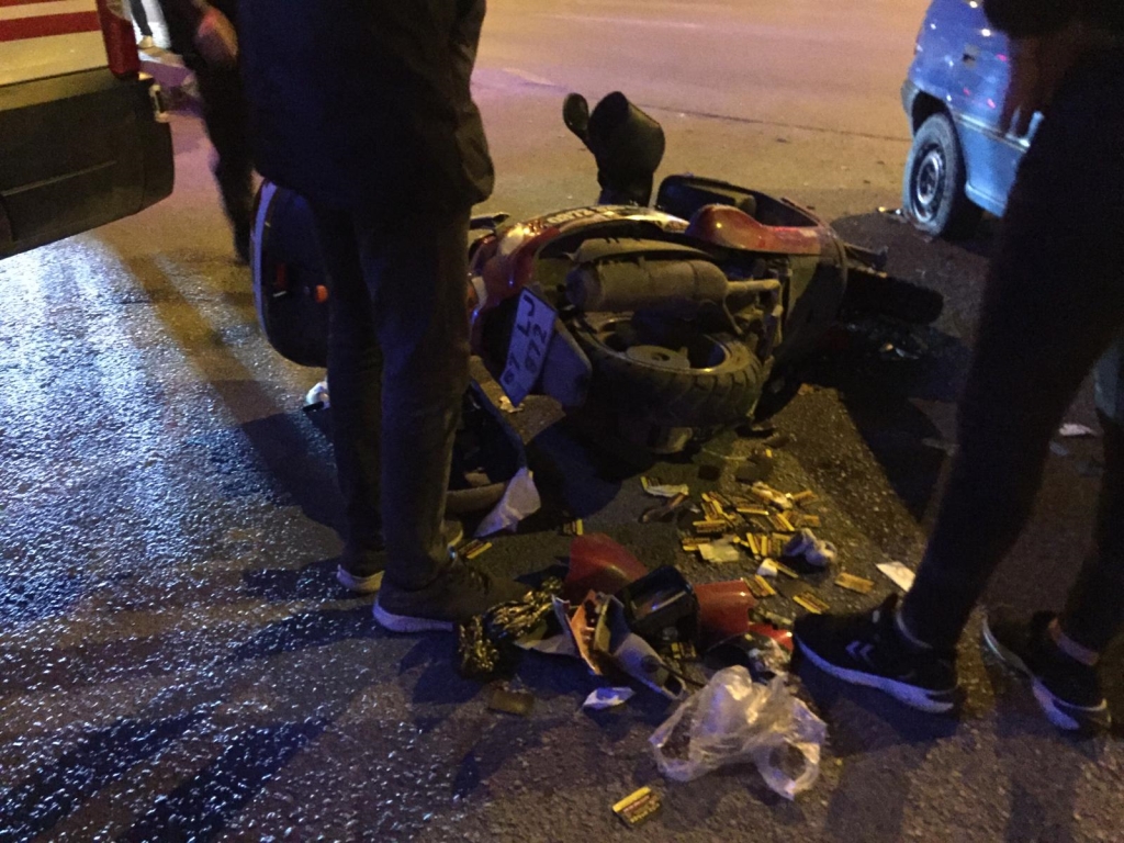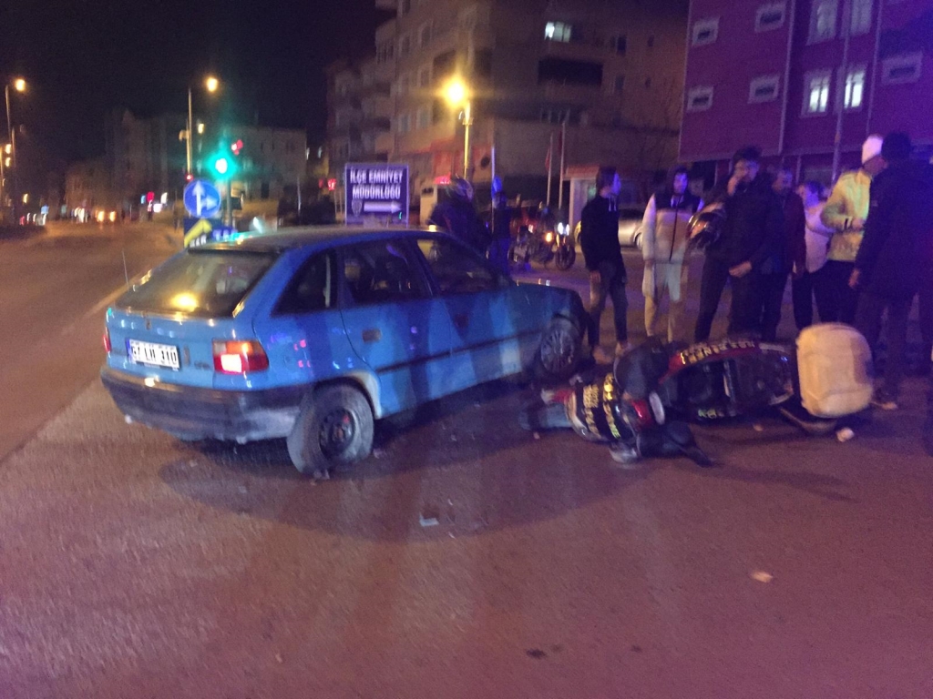 Motosiklet ile otomobil çarpıştı... 1yaralı...