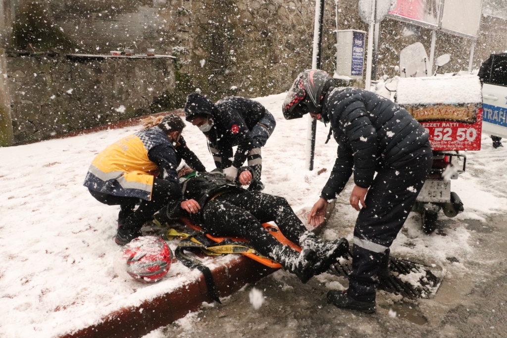 Kaza, 12.30 sularında Müftü Mahallesi Meydanbaşı Caddesi’nde meydana geldi. İddiaya göre, seyir halindeki 67 ABY 801 plakalı motosiklet sürücüsü karlı zemin nedeniyle direksiyon hakimiyetini kaybetmesi sonucu motosikleti kaydırarak kaza yaptı. Kaza sonucu yaralanan sürücü için 112 sağlık ekiplerine haber verildi. Kısa sürede olay yerine ulaşan 112 sağlık ekipleri yaralı sürücüye yaptıkları ilk müdahalenin ardından ambulansa alınarak Özel Anadolu Hastanesi’ne kaldırıldı. Yaralı sürücünün acil serviste tedavi altına alındığı öğrenildi.
