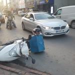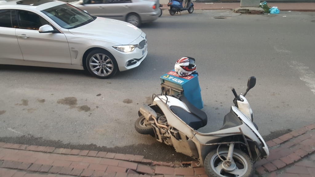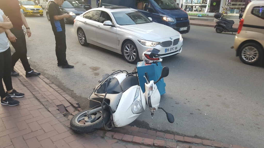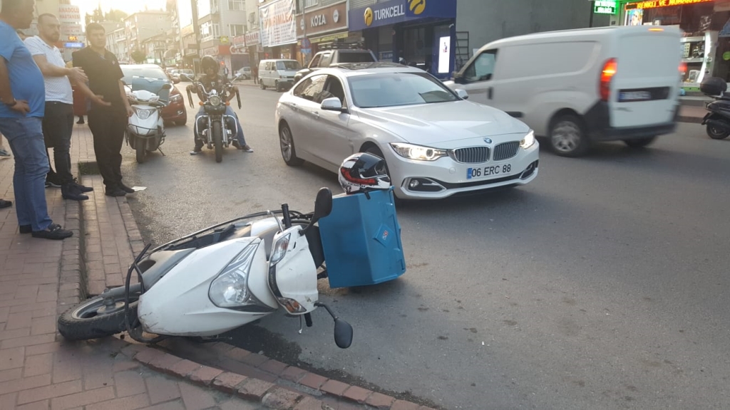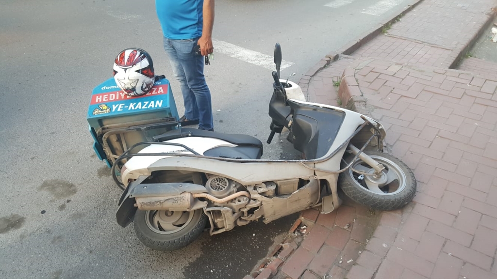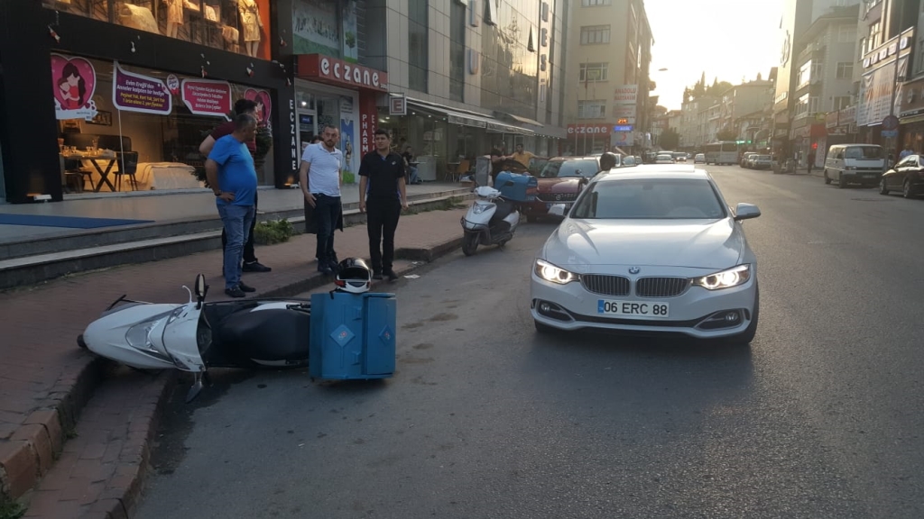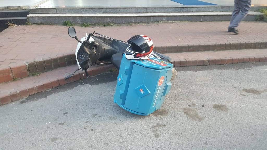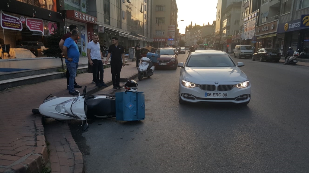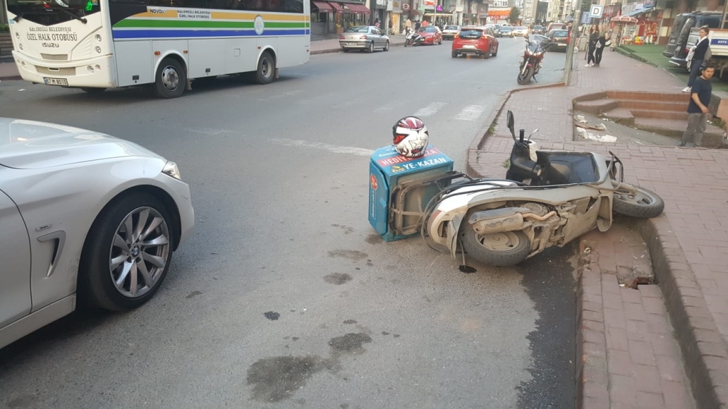 Zonguldak’ın Ereğli ilçesinde pizza firmasına ait kurye motosikleti sürücüsü, otomobili sağından geçmek isterken kaza yaptı. Otomobile çarpan motosikletin direksiyon hâkimiyetini kaybeden ve kazada yaralanan sürücü sağlık ekiplerinin ilk müdahalesinin ardından hastaneye kaldırıldı.
