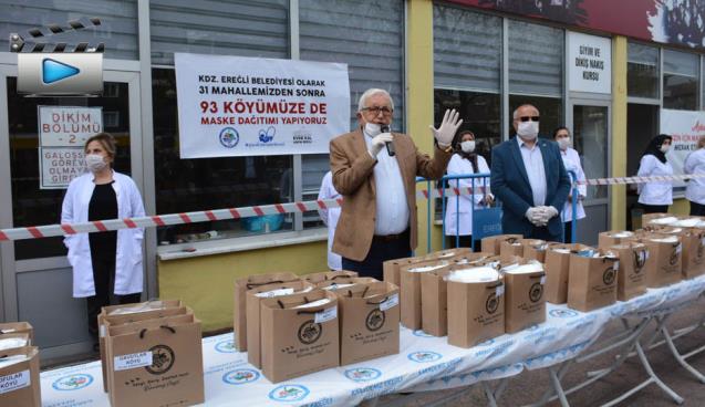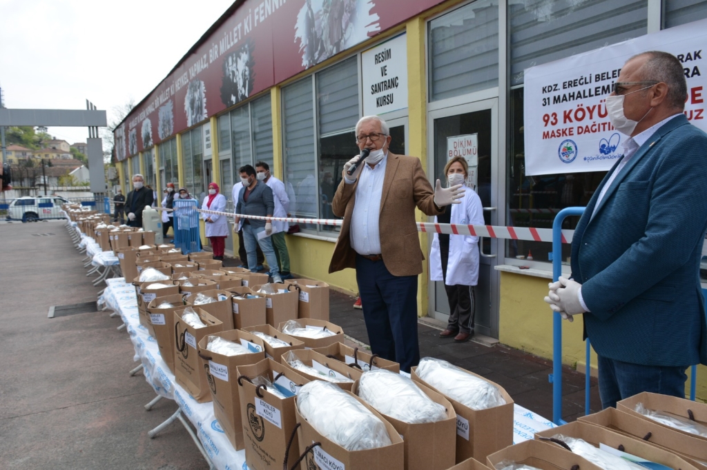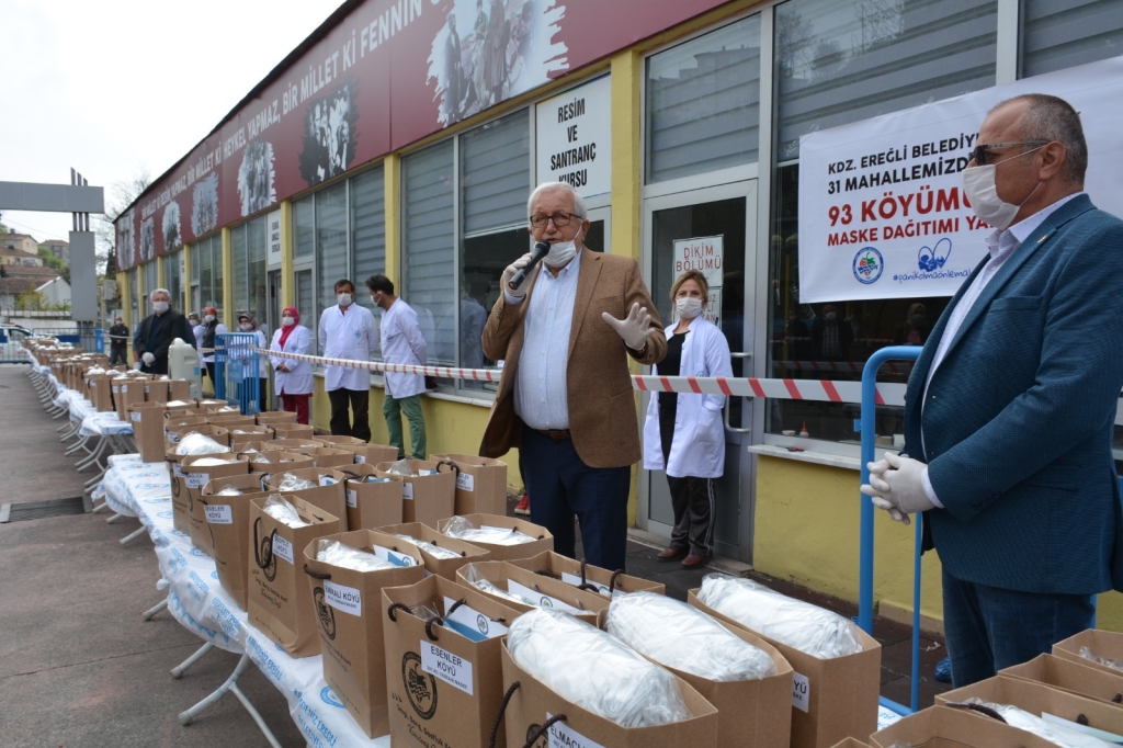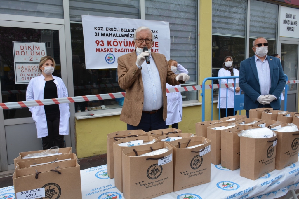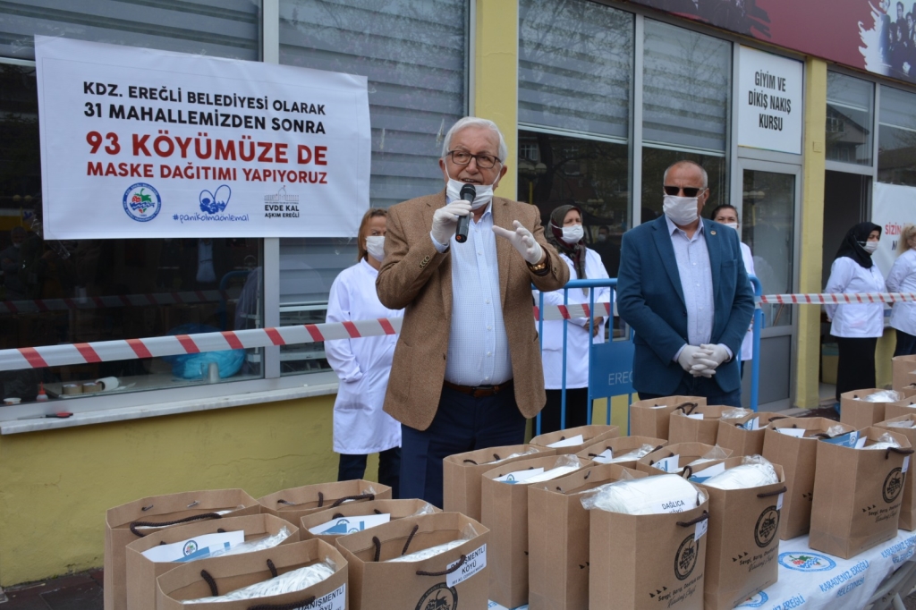 Koronavirüs salgınıyla mücadele kapsamında maske ve dezenfektan üretip 31 mahallede 50 bin haneye sağlık seti ulaştıran Kdz. Ereğli Belediyesi, Belediye Başkanı Halil Posbıyık’ın talimatıyla ilçe genelindeki köylere de maske desteğinde bulundu. Bu amaçla 93 köy muhtarına 50 bin maske teslim edildi.