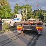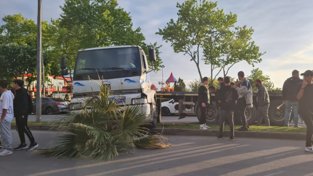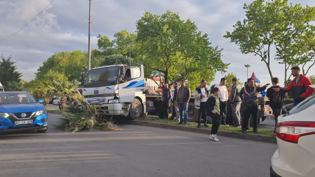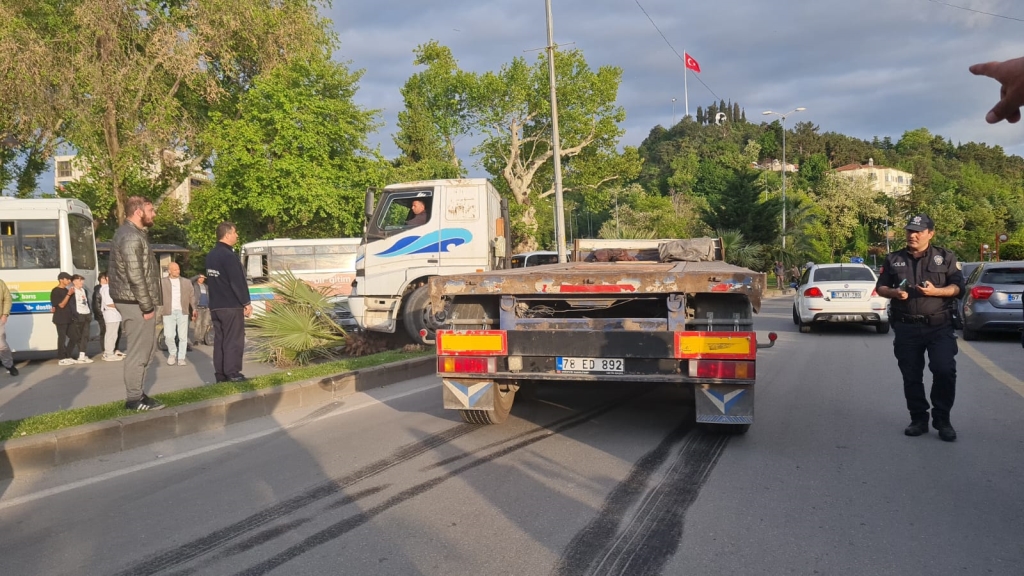 Kaza, akşam saatlerinde Bağlık Mahallesi Atatürk bulvarı'nda meydana geldi. İddiaya göre, yayaya yol vermek isteyen otomobil sürücüsünün durduğunu sonradan fark eden E.Y. idaresindeki 67 LY 220 çekici 78 ED 892 dorse plakalı TIR'ı ani fren yapması sonucu çıktıği Refüjde ağacı devirerek durabildi. Kazada şans eseri yaralanan olmazken TIR' da maddi hasar meydana geldi. Olayla ilgili soruşturma başlatıldı öğrenildi.