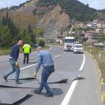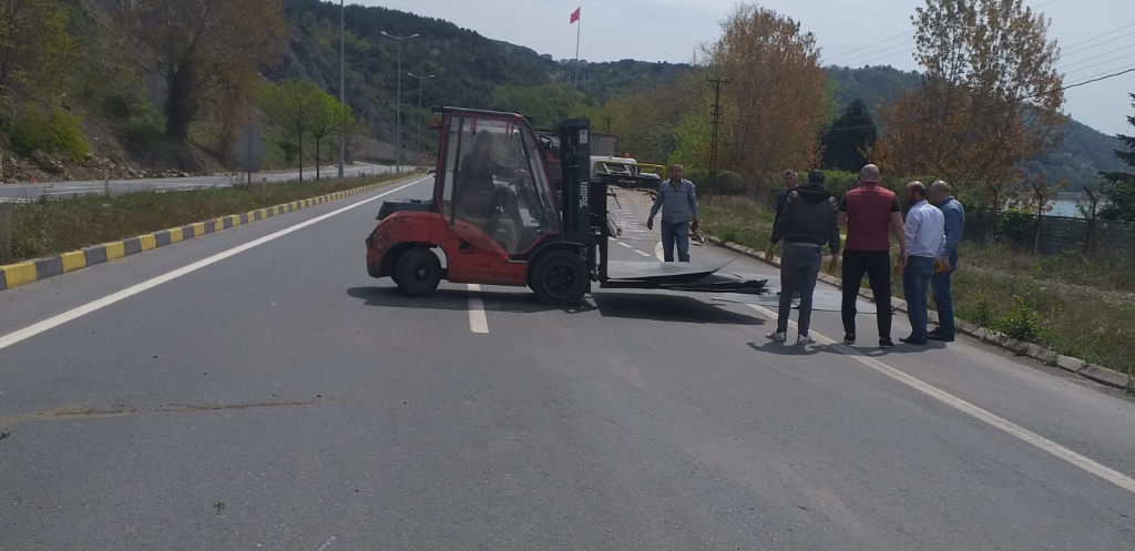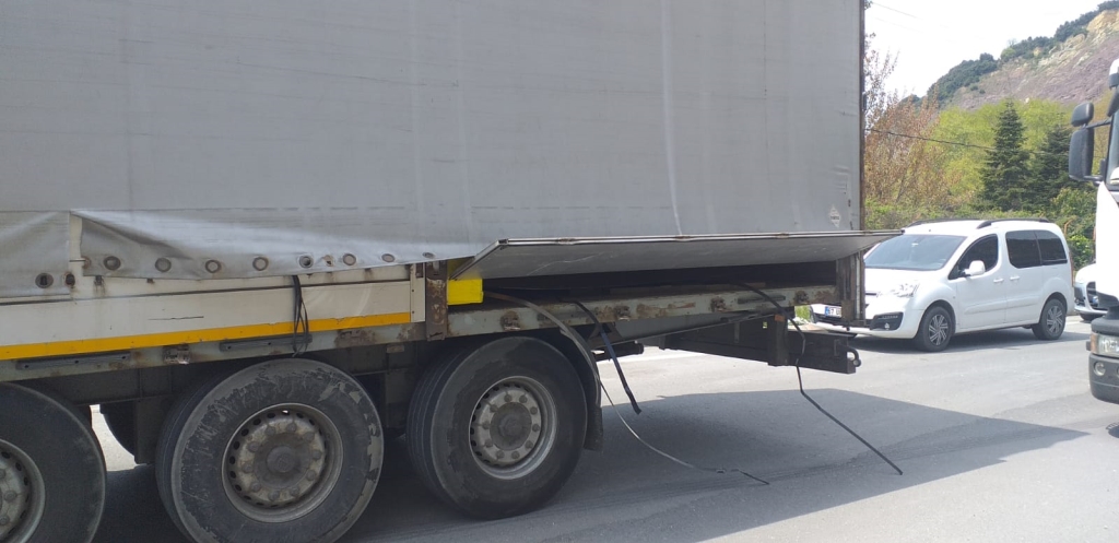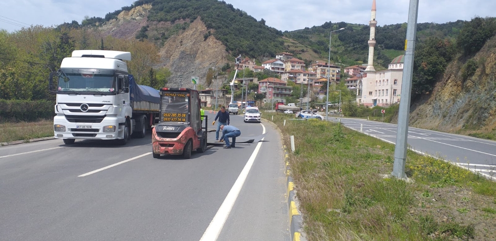 Olay Ereğli Alaplı karayolu Göktepe altı mevkiinde meydana geldi. Alınan bilgilere göre Ereğli’den yüklediği dilim sacları İstanbul’a götüren Ergin K. nin kullandığı 34 LR 0621 plakalı TIR, Göktepe altı kavşağını döndüğü sırada kapağın açılmasıyla dilim saclar çevreye dağıldı. Yaşanan olayda çevreye dağılan saclar maket polis aracına, yön levhalarına ve aydınlatma direğine zarar verdi. Yol trafiğe kapanırken, olay yerine gelen trafik ekipleri güvenlik önlemi aldı. Forklift yardımı ile çevreye dağılan sacların toplanması ve TIR’a yüklenmesi ile yol trafiğe açıldı. Trafik, BEDAŞ ve karayolları ekipleri meydana gelen hasarla ilgili gerekli tutanakları hazırlamasının ardından olay yerinden ayrıldı.