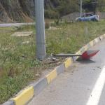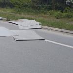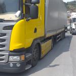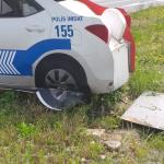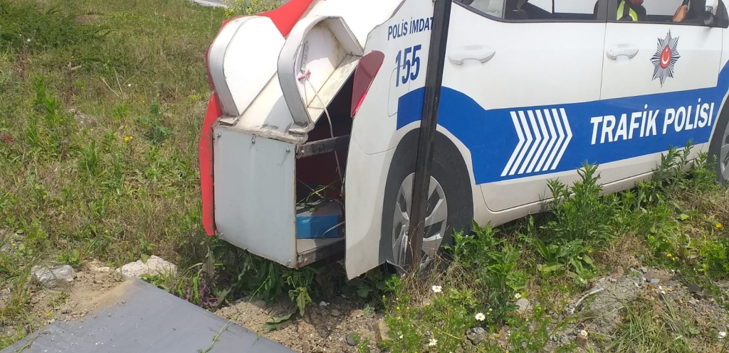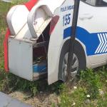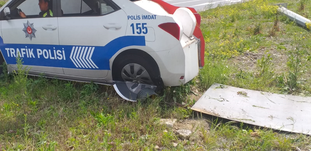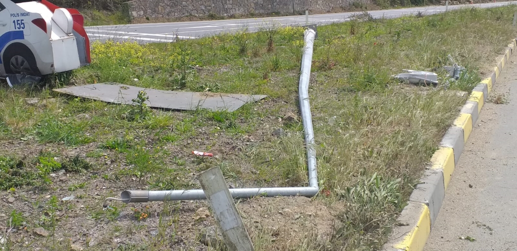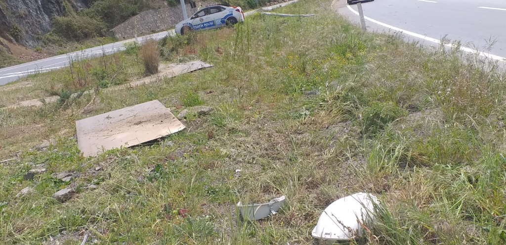 Zonguldak’ın Ereğli ilçesinde dilim sac yüklü TIR’ın açılan kapağından çevreye saçılan saclar, maket polis aracına, yön levhalarına ve aydınlatma direğine zarar verdi.