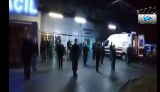 SAĞLIKÇILAR ACİL ÖNÜNDE İSTİKLAL MARŞINI OKUDU...