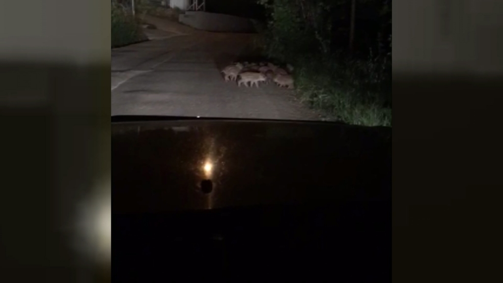 Zonguldak’ın Ereğli ilçesine bağlı Korubaşı mahallesinde sürü halinde gezen yavru domuzlar cep telefonu ile görüntülendi.