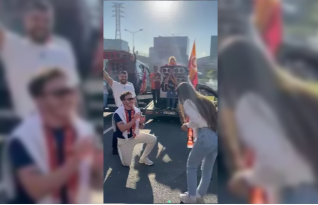 Zonguldak’tan Galatasaray’ın şampiyonluğunu kutlamak için İstanbul’a giden Özgür Kahveci ve Fulya Yılmaz, şampiyonluğu evlilik teklifi ile taçlandırdı. Rams Park çevresinde Kahveci, sevgilisi Yılmaz’a şarkılar eşliğinde evlilik teklif ederken 'Evet' cevabını aldı.