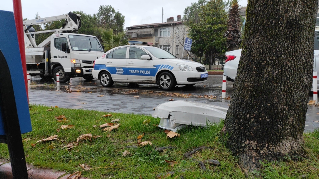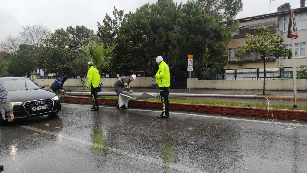 Zonguldak’ın Ereğli İlçesinde şiddetli fırtına aydınlatma direğini yıktı.