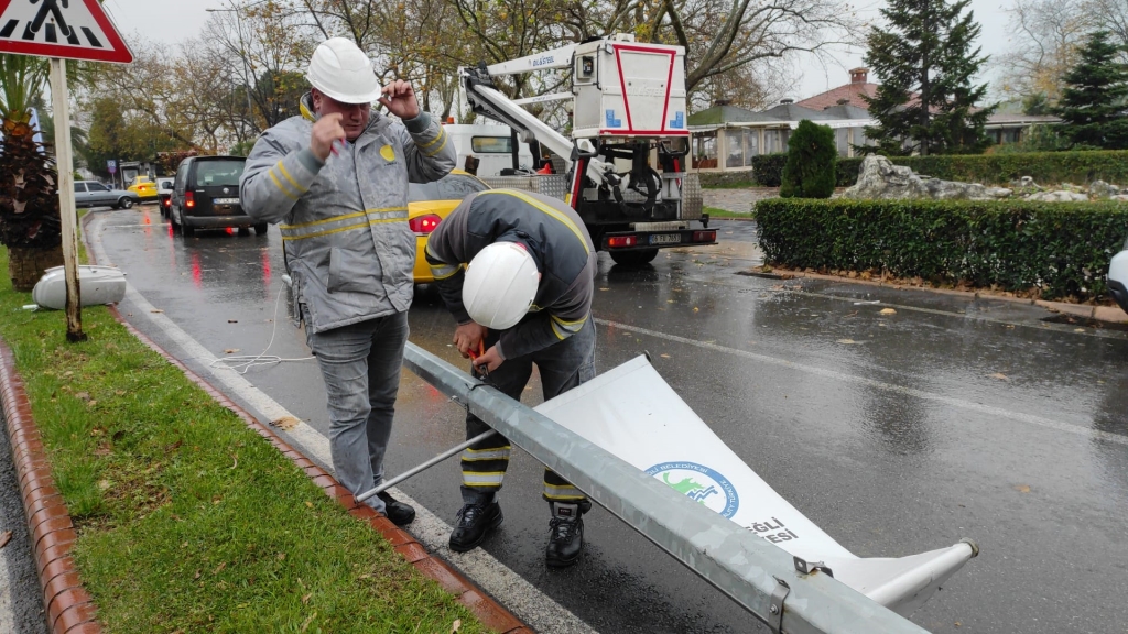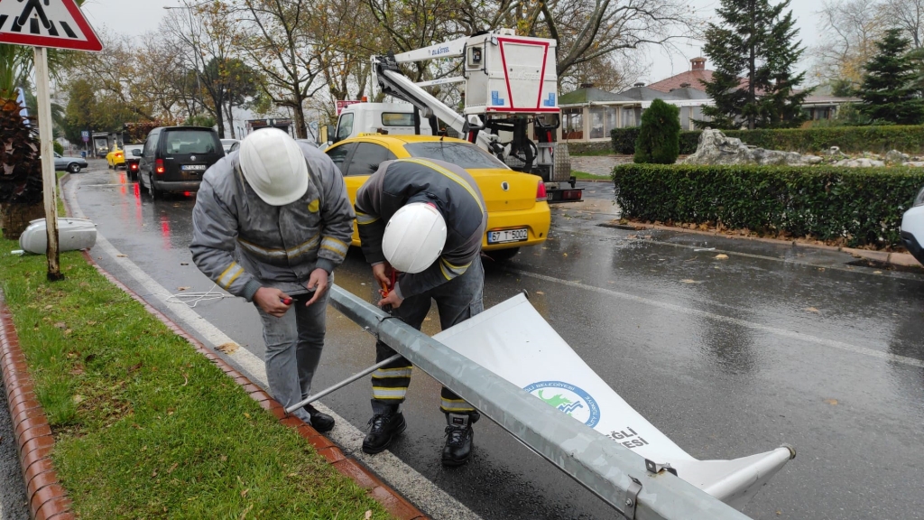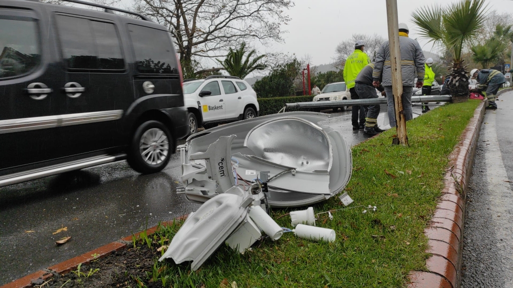 Şiddetli fırtına aydınlatma direğini yıktı.
