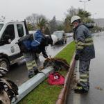Olay Orhaar Mahallesi Bozahane mevkiinde meydana geldi. Alınan bilgilere göre şiddetli fırtına refüjdeki aydınlatma direğini devirdi. Olayda yaralanan olmazken yıkılan direği gören vatandaşlar polis, itfaiye ve elektrik kurumu yetkililerine haber verdi. Olay yerine gelen ekipler aldıkları güvenlik önlemi nin ardından yıkılan direğin kaldırılması için çalışma başlattı. Çalışma sırasında trafik tek şeritten verildi.