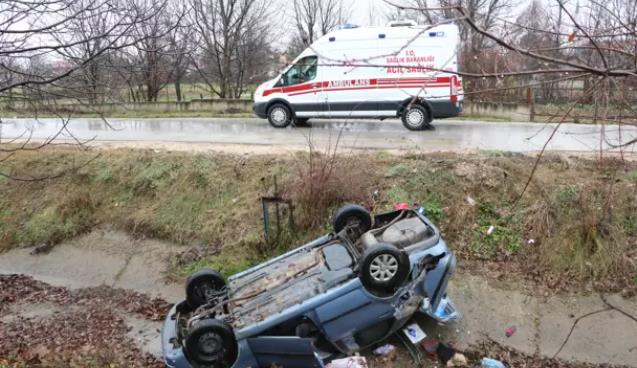 Sulama kanalına uçtu... 2 kişi yaralandı...