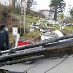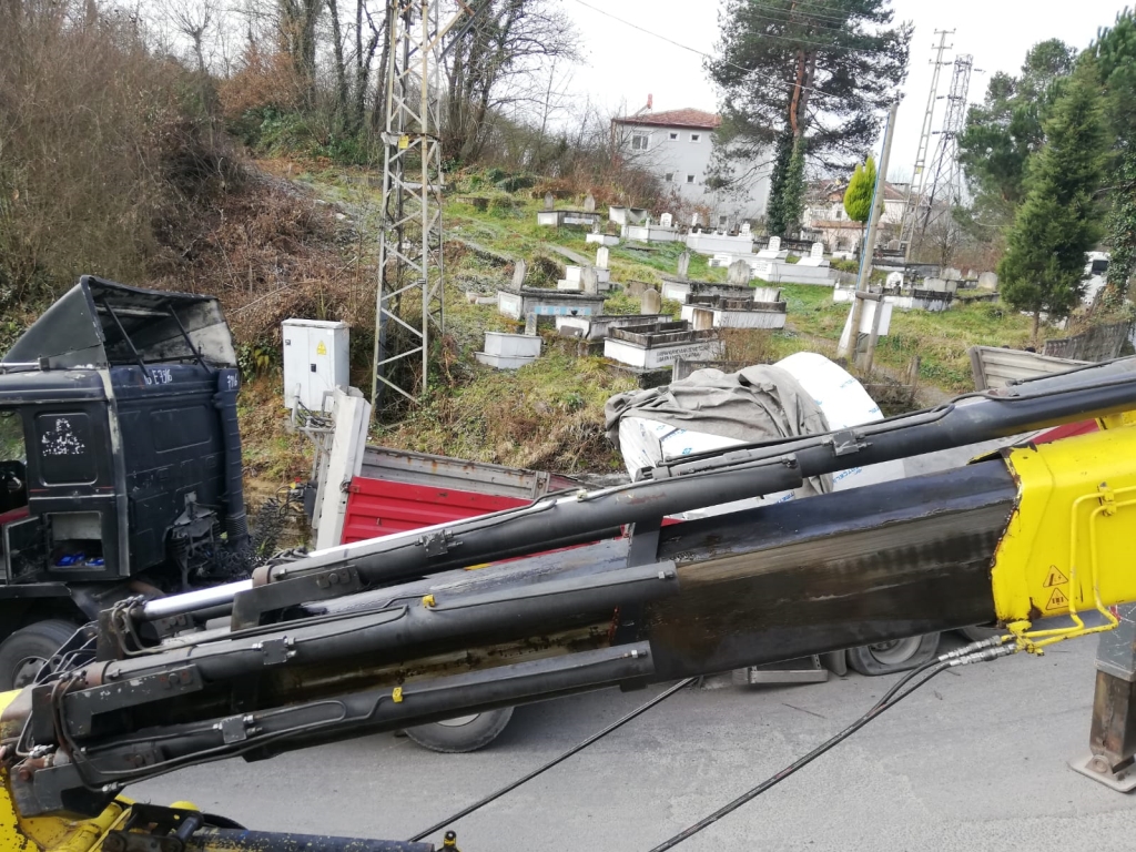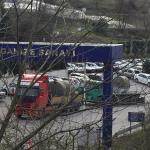 Bölünen dorsenin kapadığı yolun açılma çalışmaları sürerken, yolu kullanmak için bekleyen tırlar gözlerden kaçamadı.