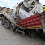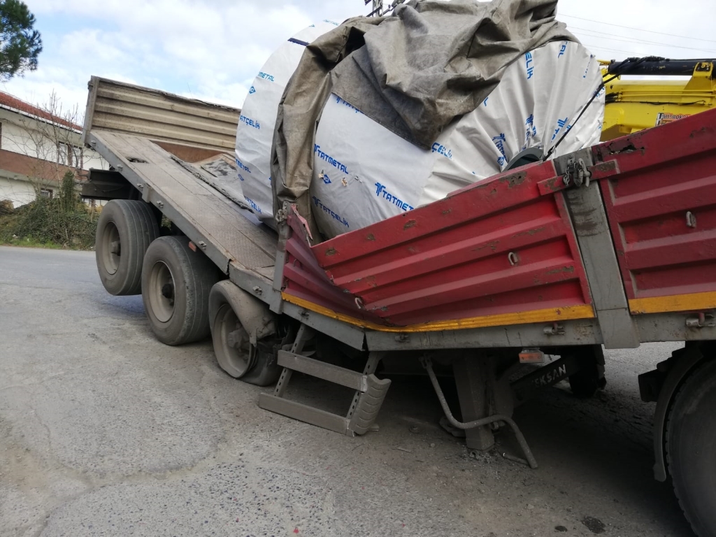 Zonguldak’ın Ereğli ilçesi Organize sanayi bölgesinde Rulo sac yükleyen TIR’ın Dorsesi ağırlığı kaldıramayarak ikiye bölündü.