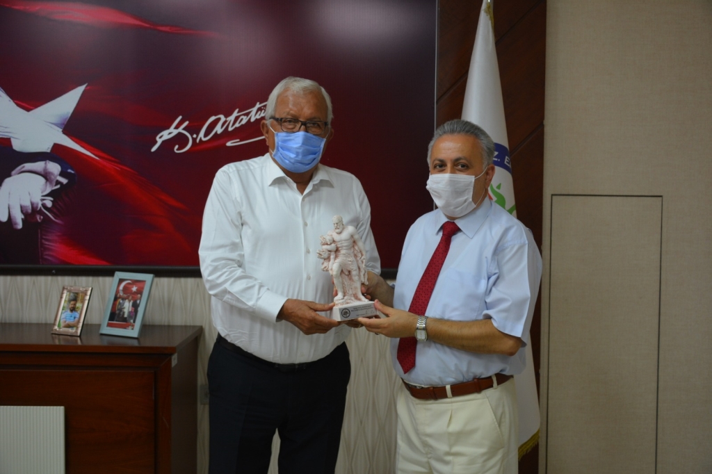 Başkan Posbıyık, ziyaretin anısına THK heyetine Herkül heykeli verdi.