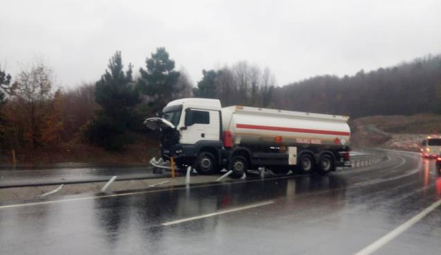 Bir süre kayan tanker, orta refüje çarpmasının ardından karşı şeride geçerek ters istikamette durabildi.Sürücünün yara almadan kurtulduğu kaza nedeniyle Bölge Trafik ekipleri, bir süre ulaşıma kapattıkları güzergahta, daha sonra kontrollü geçiş sağladı.