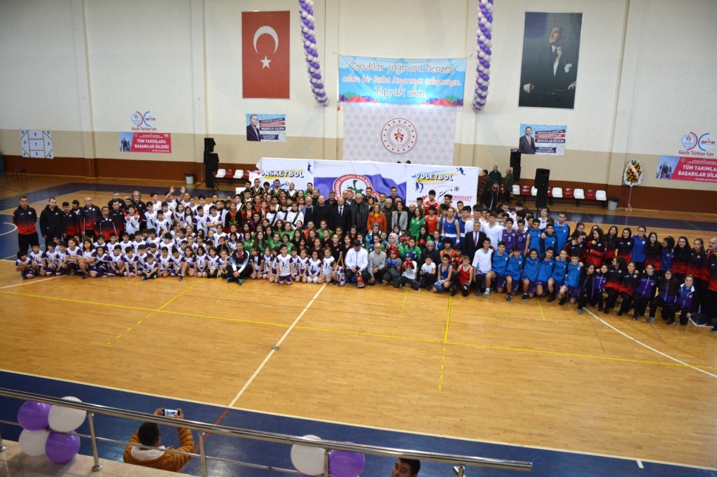 Kız Erkek Basketbol – Voleybol – Oturarak Voleybol – Hentbol – Boks ve Halk Oyunları ile futbol okulundaki takımlar elde ettikleri başarılar anons edilerek salona davet edildi.
