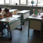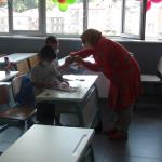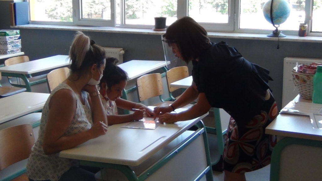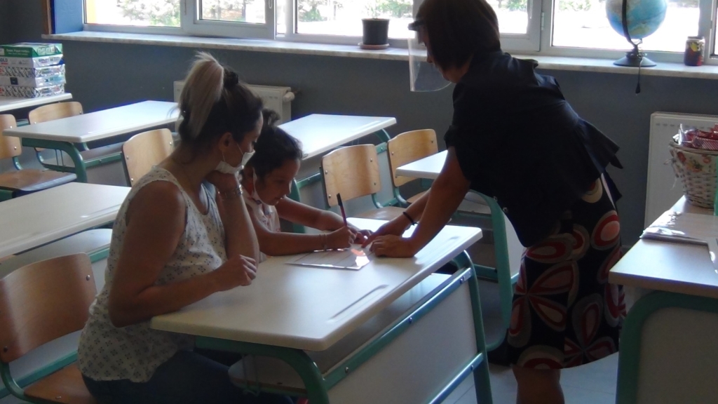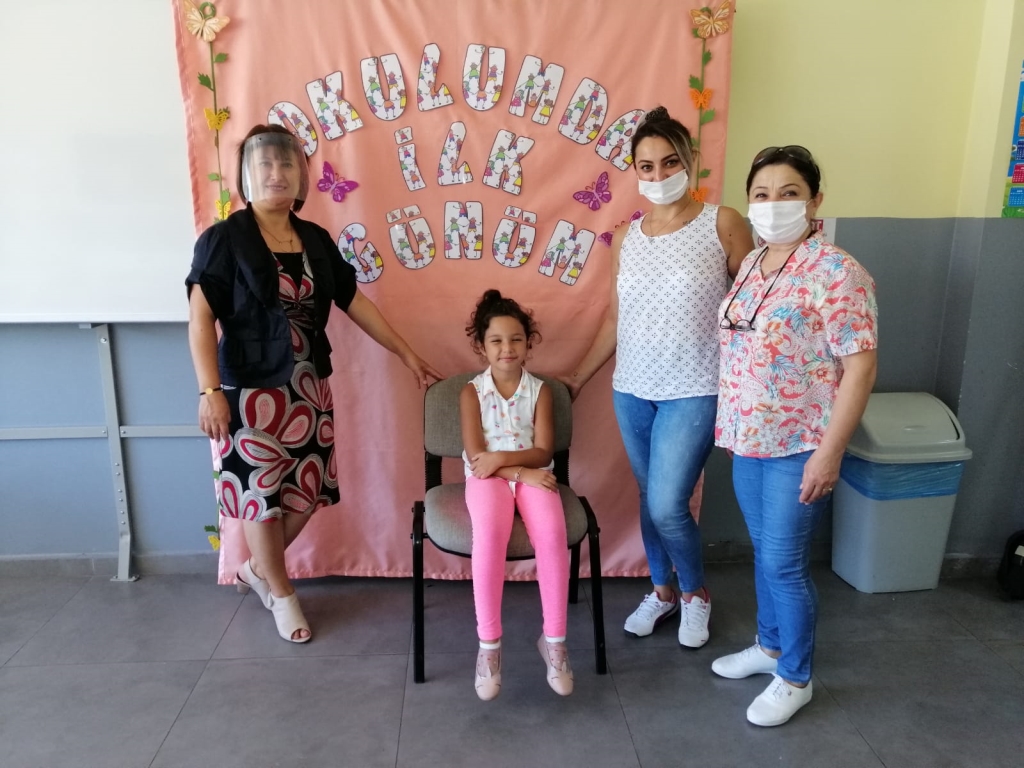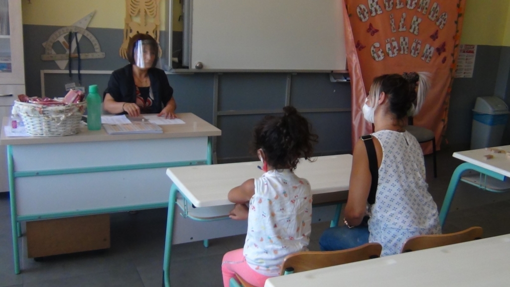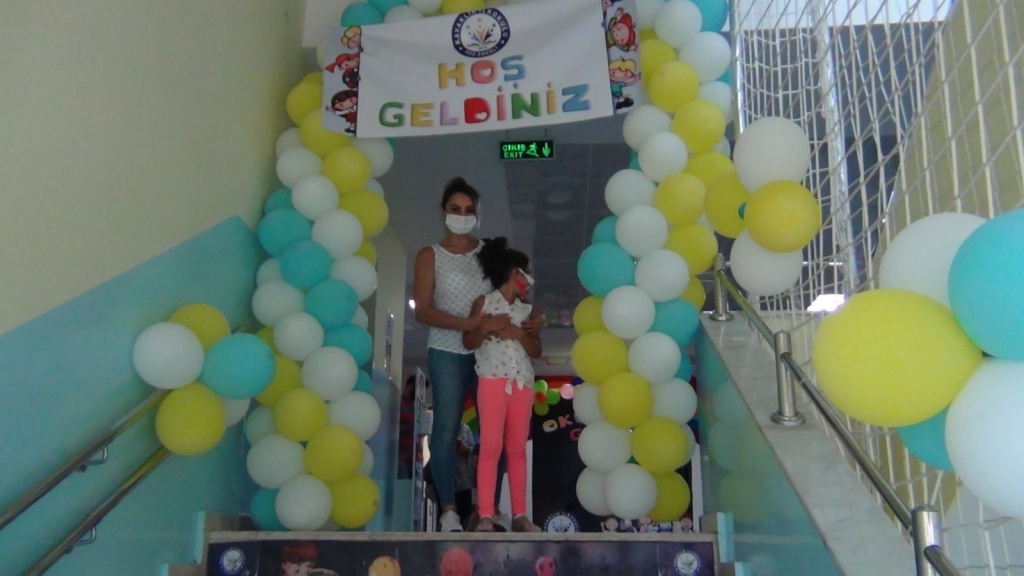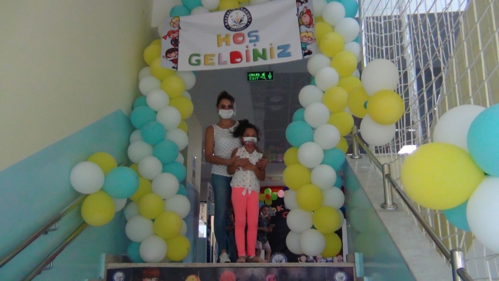 Girişinde dezenfektan bulundurulan, sınıflarda özel tedbirlerin alındığı okulda, öğretmenlerin maske ve hijyen kurallarına dikkat ettikleri gözlendi.