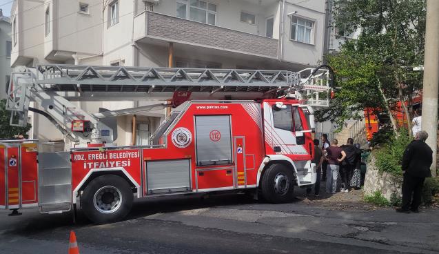 Karadeniz Ereğli ilçesinde evde çıkan yangında yaşlı kadın son anda kendini dışarıya atabildi.