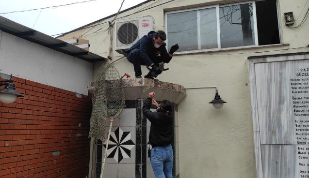 Zonguldak’ın Ereğli ilçesinde çeşme ile iş yeri arasında ki boşlukta sıkışan yavru kedi, itfaiye ekiplerince kurtarıldı.