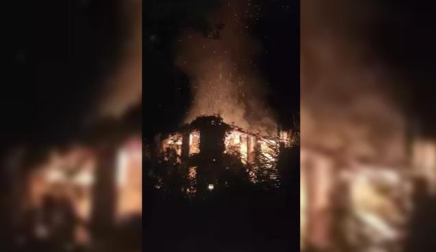 Düzce’nin Akçakoca ilçesinde yıldırım düşen 2 katlı metruk bina alev alev yandı.