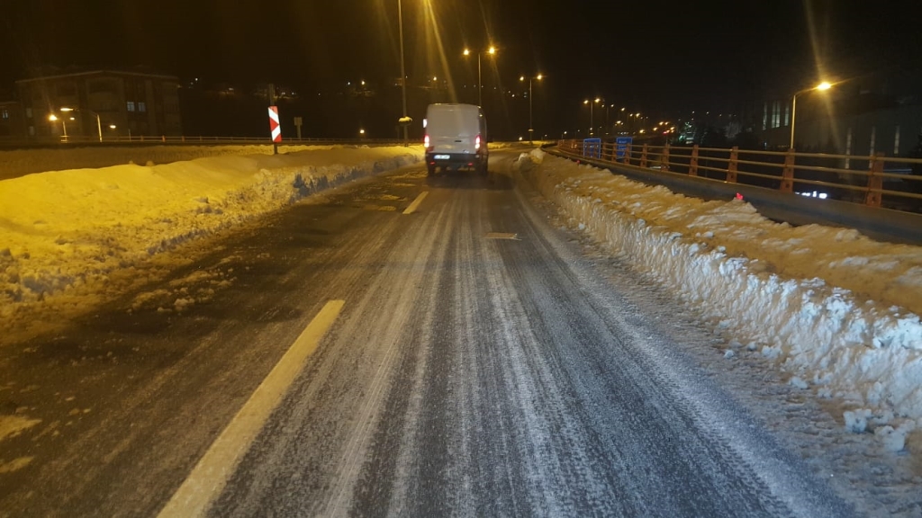 Zonguldak’ın Ereğli İlçesinde yogun kar yağışının ardından buz tutan yollar sürücülere zor anlar yaşatıyor.