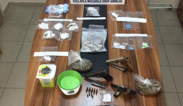 Zonguldak’ın Ereğli ilçesi Kaçakçılık ve Organize suçla Mücadele büro amirliği (KOM) ekipleri tarafından düzenlenen uyuşturucu operasyonunda 7 kişi gözaltına alındı. KOM ekiplerinin düzenlediği operasyonda 204 uyuşturucu hap, yaklaşık 300 gram uyuşturucu, 1 hassas terazi, 1 sarma sigara, 1 kurusıkı tabanca, 2 ruhsatsız tabanca, 1 tüfek, 14 fişek ve kilitli şeffaf poşetler ele geçirildi.