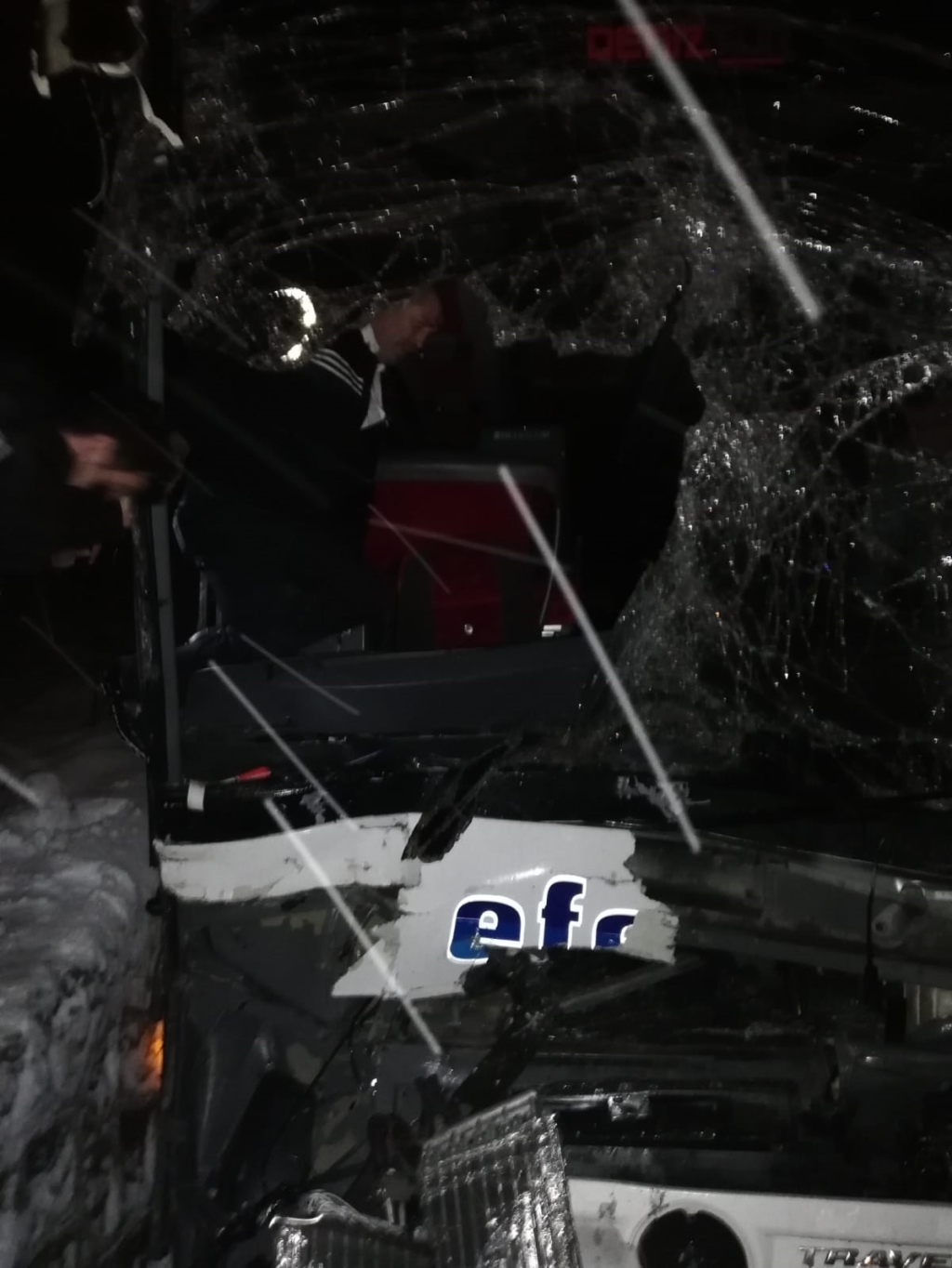 Kaza, akşam saatlerinde Ereğli yolu Elmacı sapağında meydana geldi. İddiaya göre, zeminin kaygan oluşu ile birlikte M.A., yönetimindeki Efe tura ait 41 KG 036 plakalı ve içinde 25 yolcunun bulunduğu yolcu otobüsü, Ereğli Elmacı sapağında kontrolden çıkarak önünde seyreden 74 AY 165 plakalı kamyon ile çarpıştı. Kazada şans eseri yaralanan olmazken araçlarda maddi hasar oluştu. Kazanın ardından jandarma bölgede geniş güvenlik önlemi aldı. Kazayla ilgili soruşturma başlatıldı.