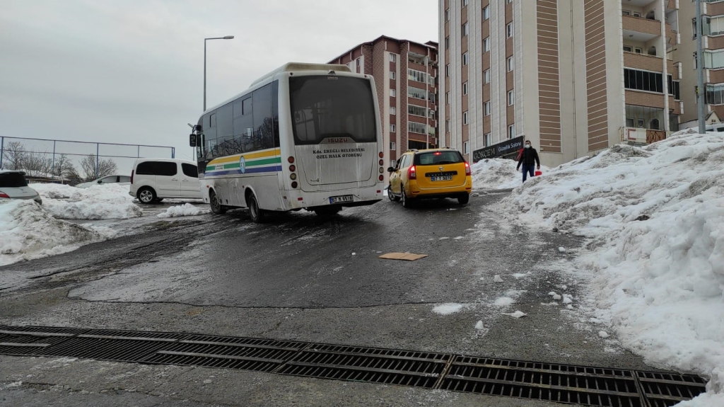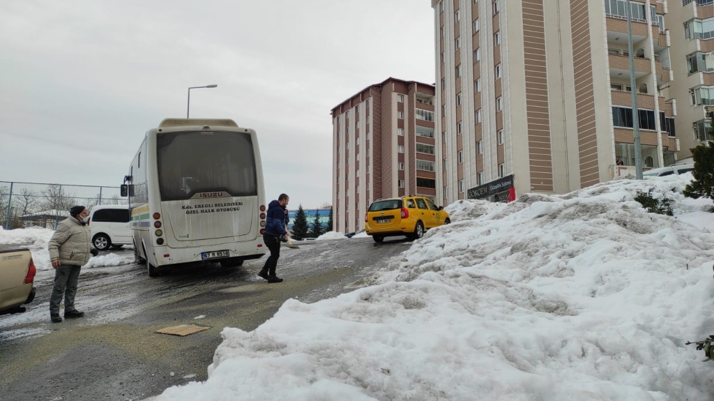 Karadeniz Ereğli ilçesinde buzlu yolda kayan otobüs tuzlama yapılmasının ardından yokuştan inerek olası bir kaza önlendi.