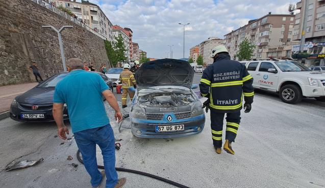 Karadeniz Ereğli ilçesinde hareket halindeki otomobil alevlere teslim oldu. Araç sürücüsü ve iki yolcusu son anda kendilerini araçtan dışarı atarken, araçtaki yangına ilk müdahale çevredeki esnaftan geldi.