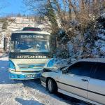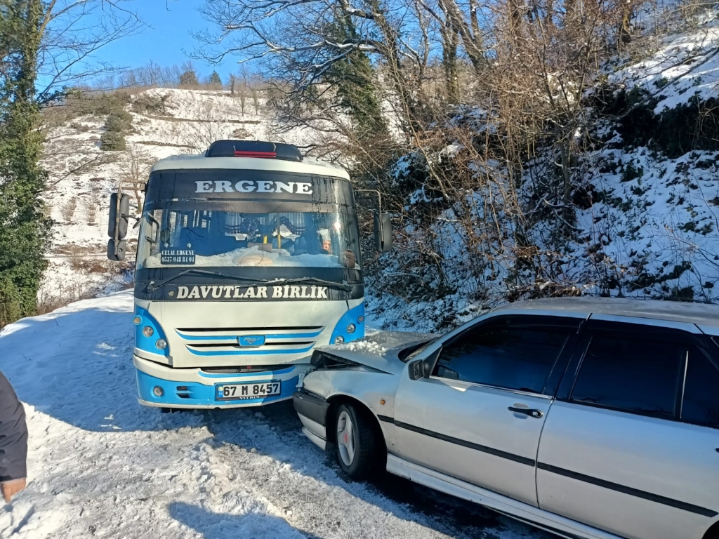 Zonguldak’ın Ereğli ilçesine bağlı Kızılcapınar köy yolunda meydana gelen kazada iki araçta hasar meydana geldi. Kazayı gören vatandaşlar “Minibüs olmasaydı otomobil uçuruma yuvarlanacaktı. Yolda en kısa zaman da çalışma yapılması gerekiyor” dediler.